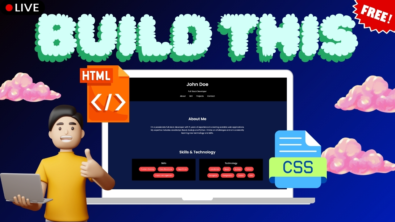 Learn how to create a stunning portfolio website using only HTML and CSS in this step-by-step tutorial. Perfect for beginners, students, and intermediate developers looking to showcase their skills online. In this video, you'll discover: - The basics of HTML structure and CSS styling - How to design a 1 page layout - Easy to scan website - CSS layout and styling Whether you're a high school student, college learner, or self-taught developer, this tutorial will help you build a professional-looking portfolio to impress potential employers or clients. No fancy frameworks or libraries required β just pure HTML and CSS! π Full Code in GitHub: https://github.com/mydevpage/Portfolio-Website---HTML-CSS π¨βπ» Visit MyDevPage to create your portfolio site for free: https://mydevpa.ge/ π¨βπ» For more web development tutorials visit: https://mydevpa.ge/blog